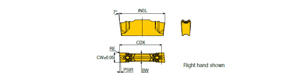 | Designation | SSC | CW | RE | BW | INSL | PSIR | CDX | fg (min) | fg (max) | Tough ‹————› Hard Grade & Vc Click on grade for cutting speed value |