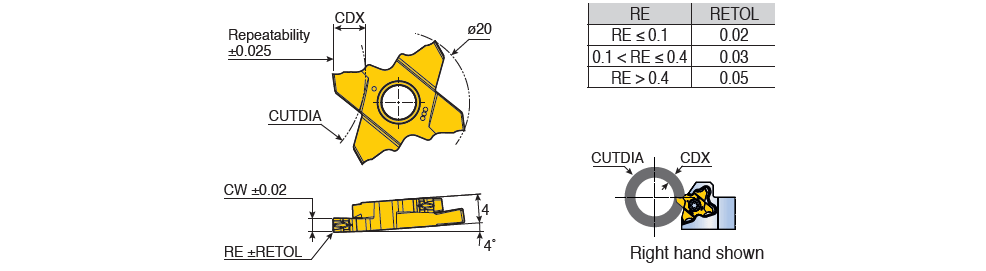 Tornalama merkezi ve çok amaçlı tezgahlarda gerçekleştirilen kesme ve kanal açma işlemi; kesme derinliğine, kesme genişliğine, köşe yarıçapına, uygulama ve malzeme tipine göre özel olarak üretilen kesici uçlarla gerçekleştirilir. Taegutec TQJ 20 kesme ve kanal açma ucu; İsviçre dönüşünde yumuşak malzemelerin dilimlenmesi, kanal açması ve kenar işlemesi için J-talaş kırıcılı 4 kesme kenarı kesici uç.
