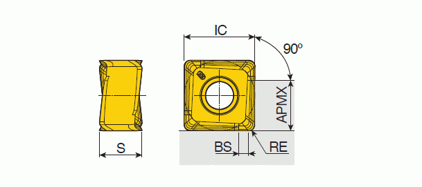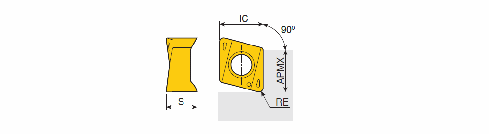 Genel işlemede 90° omuzlar için benzersiz dört yüksek pozitif helisel kesme kenarı ve yüksek rampa kapasitesi ile çift taraflı kesici uçlar