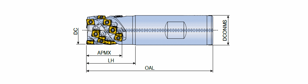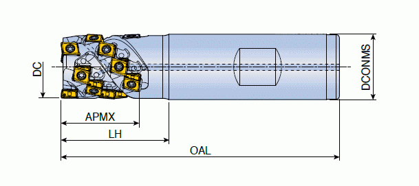 Güçlü teğetsel tip 4 kesme kenarlı LPK(H)U uçlara sahip genişletilmiş kanallı parmak frezeler