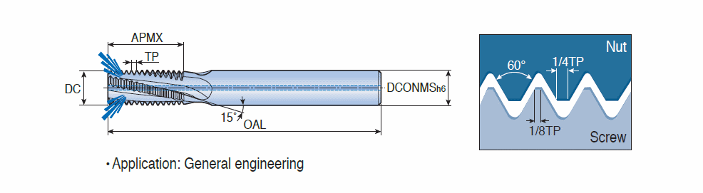MTECZ-ISO : ISO metrik dişler için kanallarında soğutma sıvısı delikleri bulunan yekpare karbür içten diş açma parmak frezeler