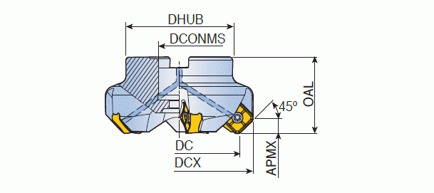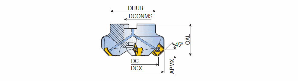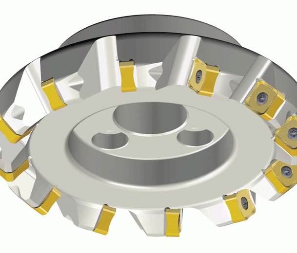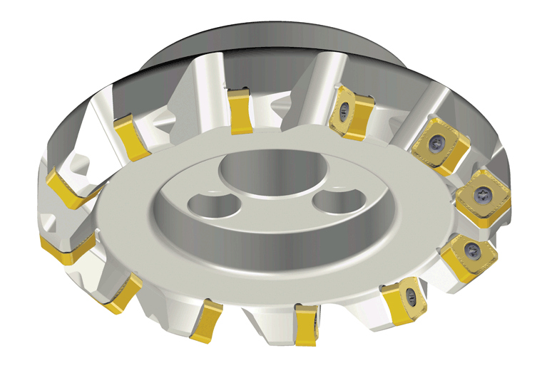 Çeliklerin ve dökme demirlerin kaba talaş işlemesi için SN 16 çift taraflı 8 kesme kenarlı kesici uçlara sahip 45° ağır hizmet tipi yüzey frezeleri