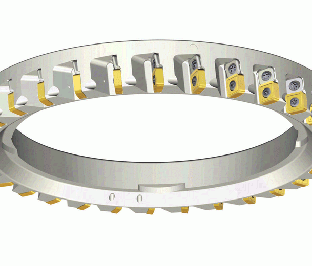 Dökme demirlerin finisajı için ayarlanabilir ceplere ve hassas taşlanmış SN 12 kesici uçlara sahip hızlı değiştirme sistemli kesiciler