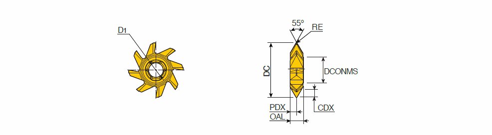 55° Kısmi profilli değiştirilebilir yekpare karbür diş açma kafaları